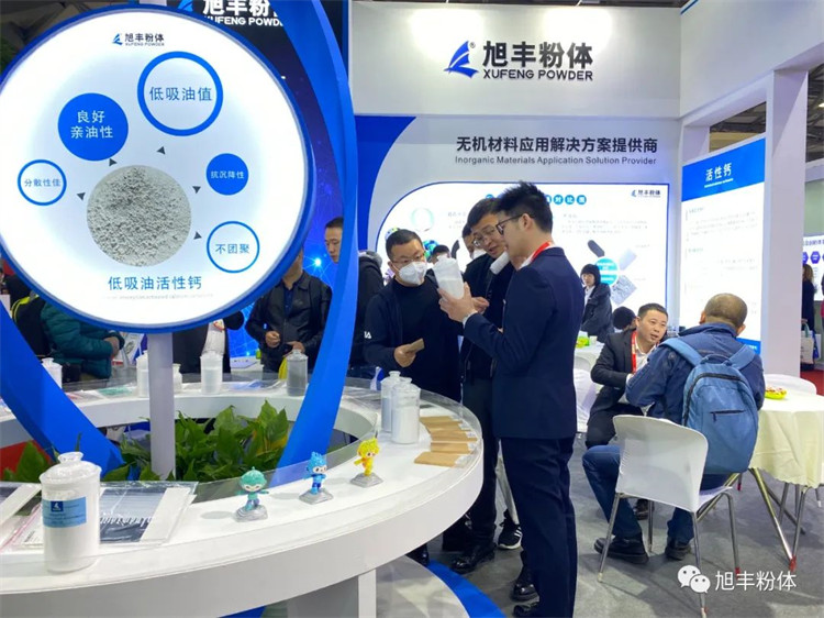 旭豐粉體本次展會依然充滿“新”意,以穩(wěn)重藍(lán)為主色調(diào),展位造型簡約不失大氣,設(shè)有直觀的產(chǎn)品展示區(qū),并以專業(yè)的知識和服務(wù),吸引了行業(yè)大咖駐足參觀和互動交流!